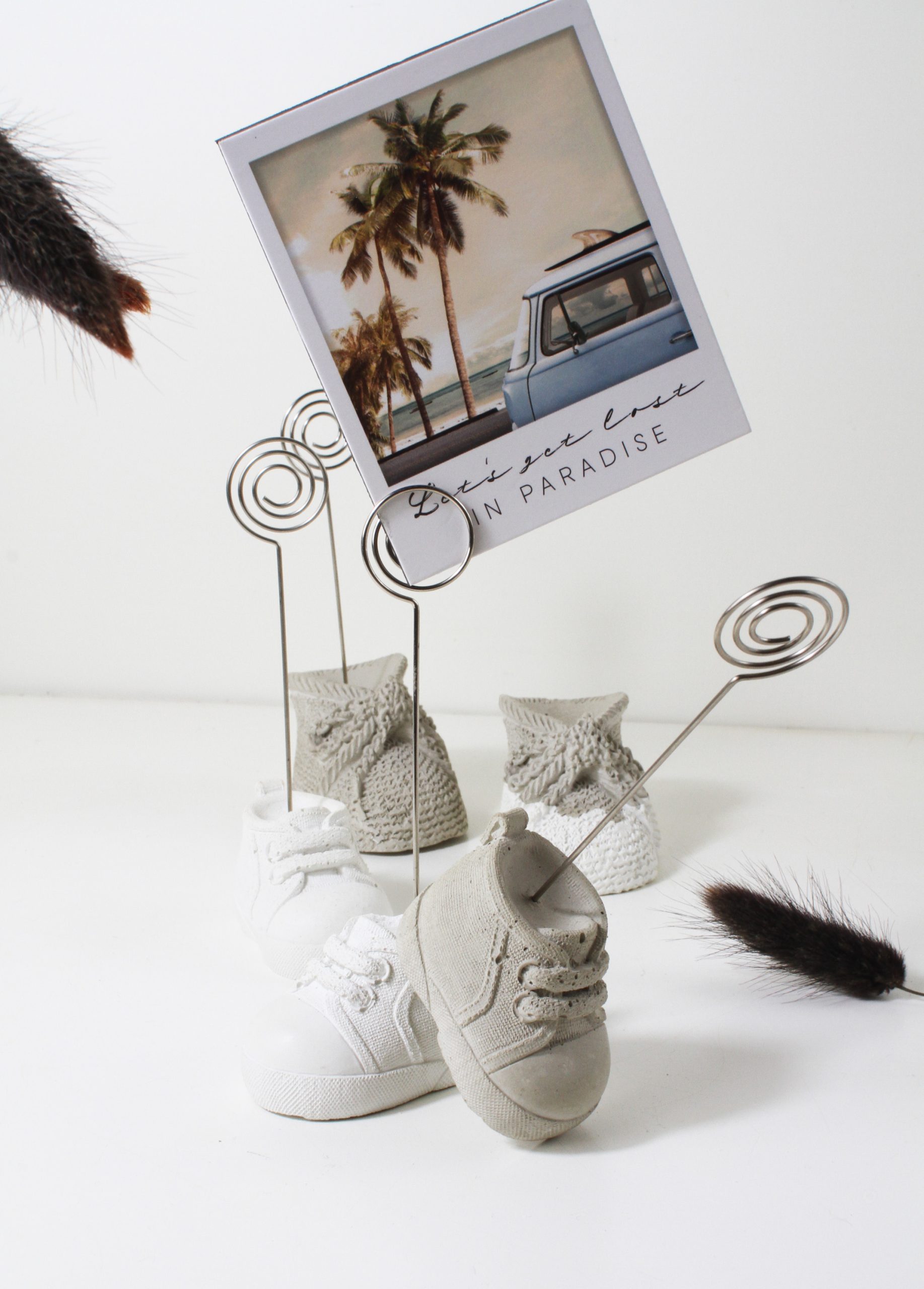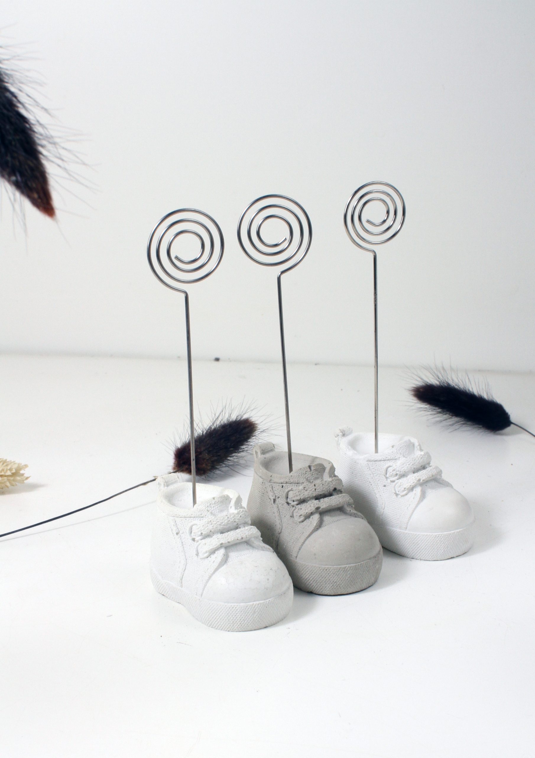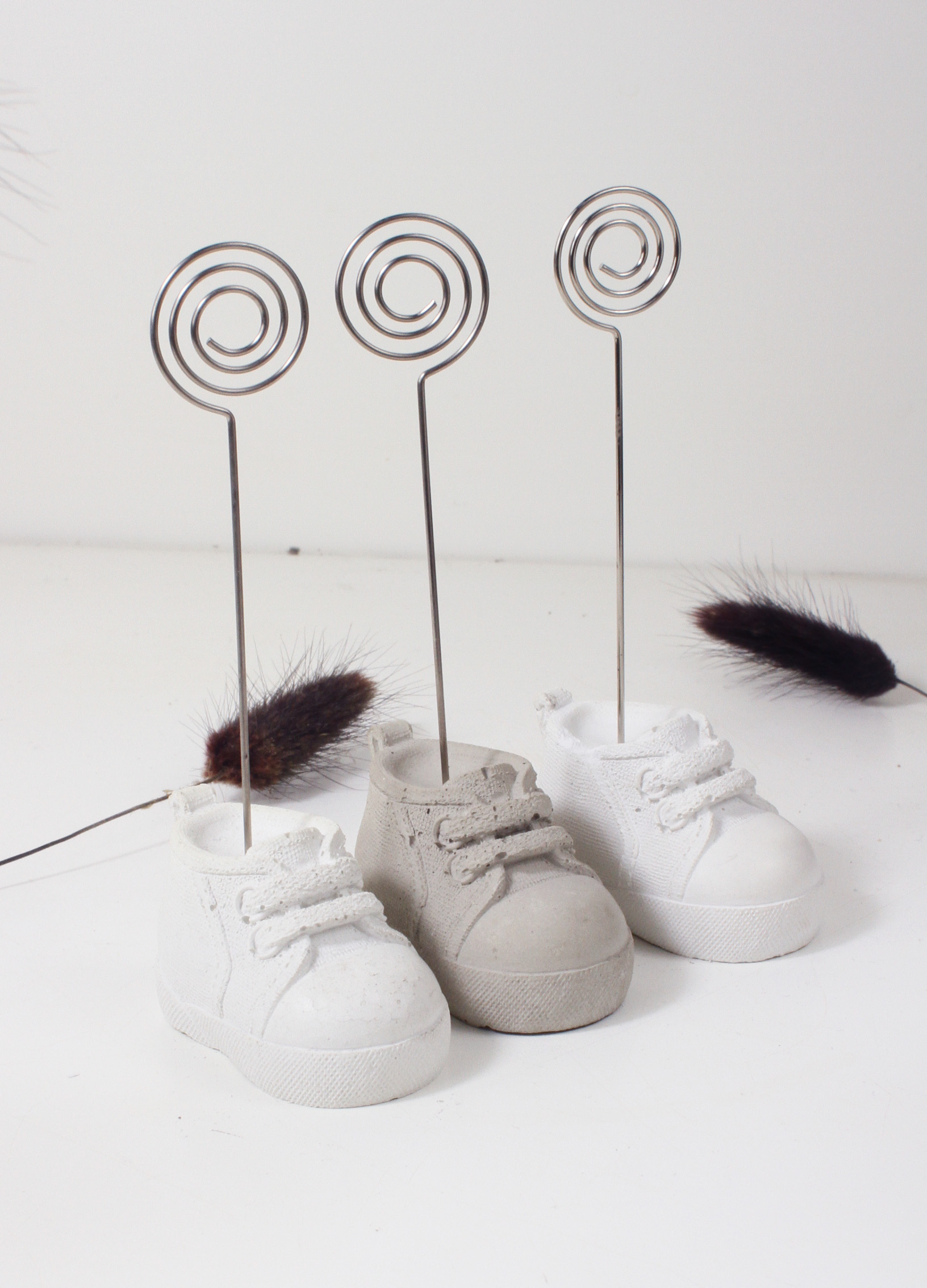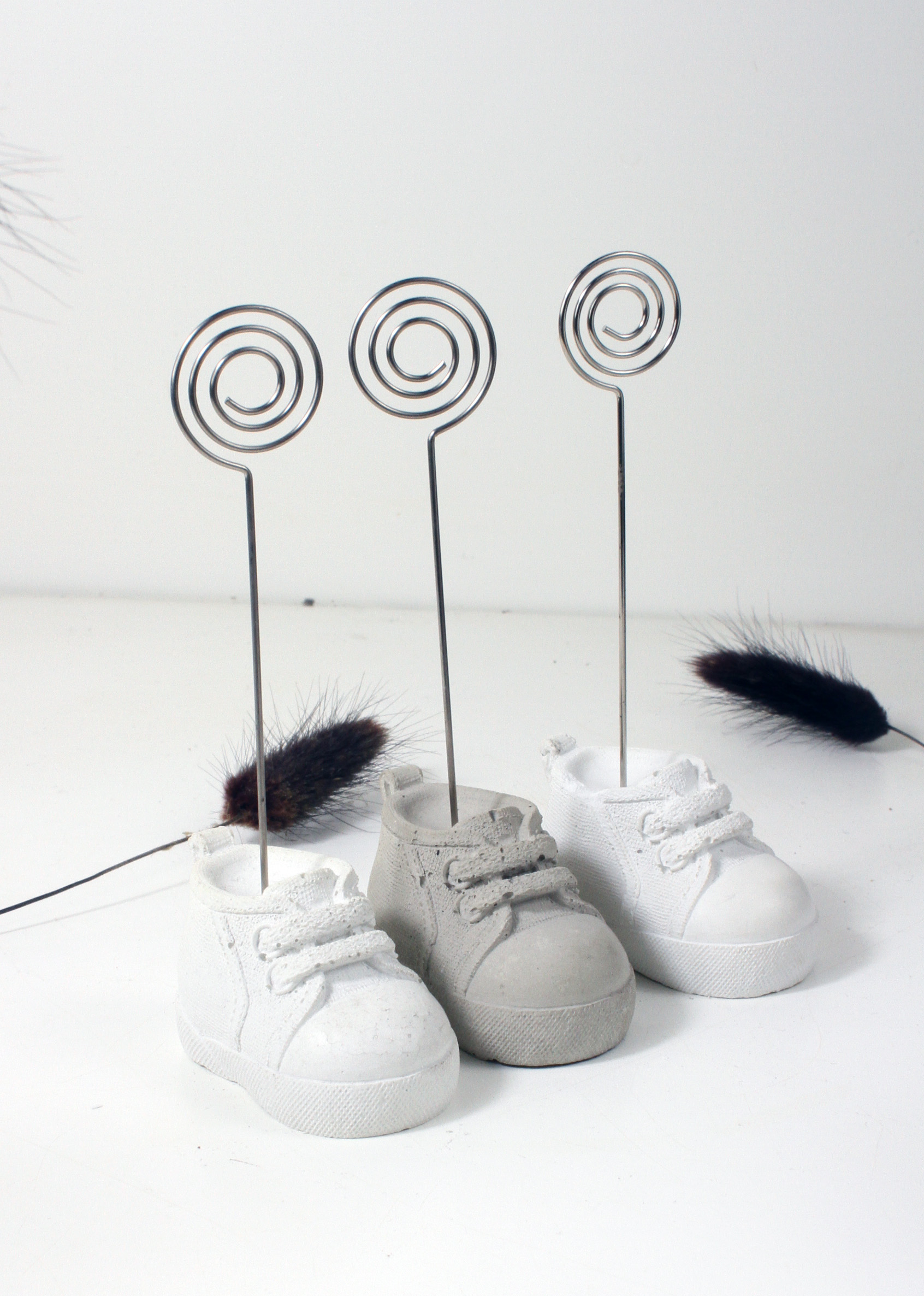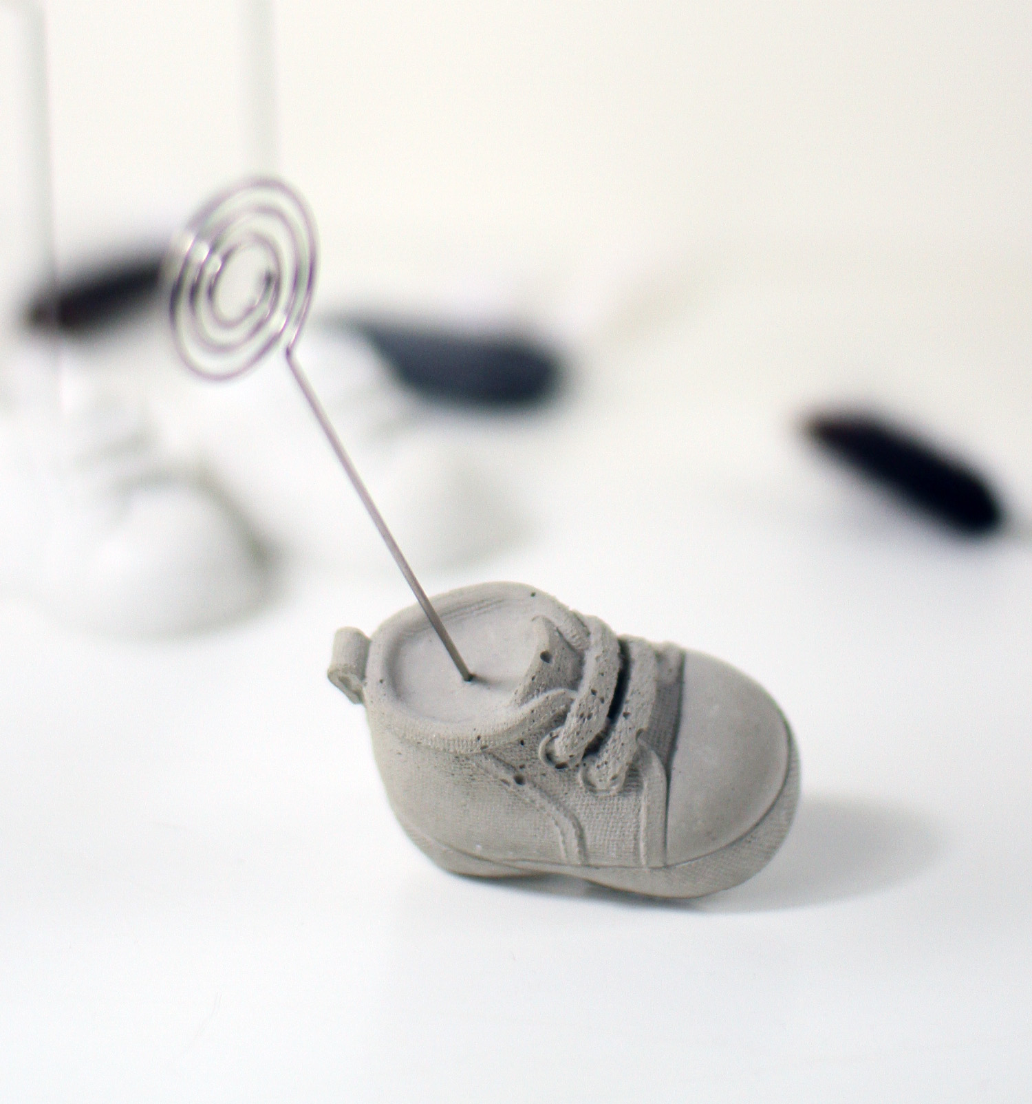 Dieser originelle Fotoclip eignet sich wunderbar als Geschenk zur Babyparty. Aber nicht nur für Kleinkinder sondrn auch für Turnschuhliebhaber geeignet. Hüsche Deko aus Beton, kein Raisin, Jesomite oder anderes Material.