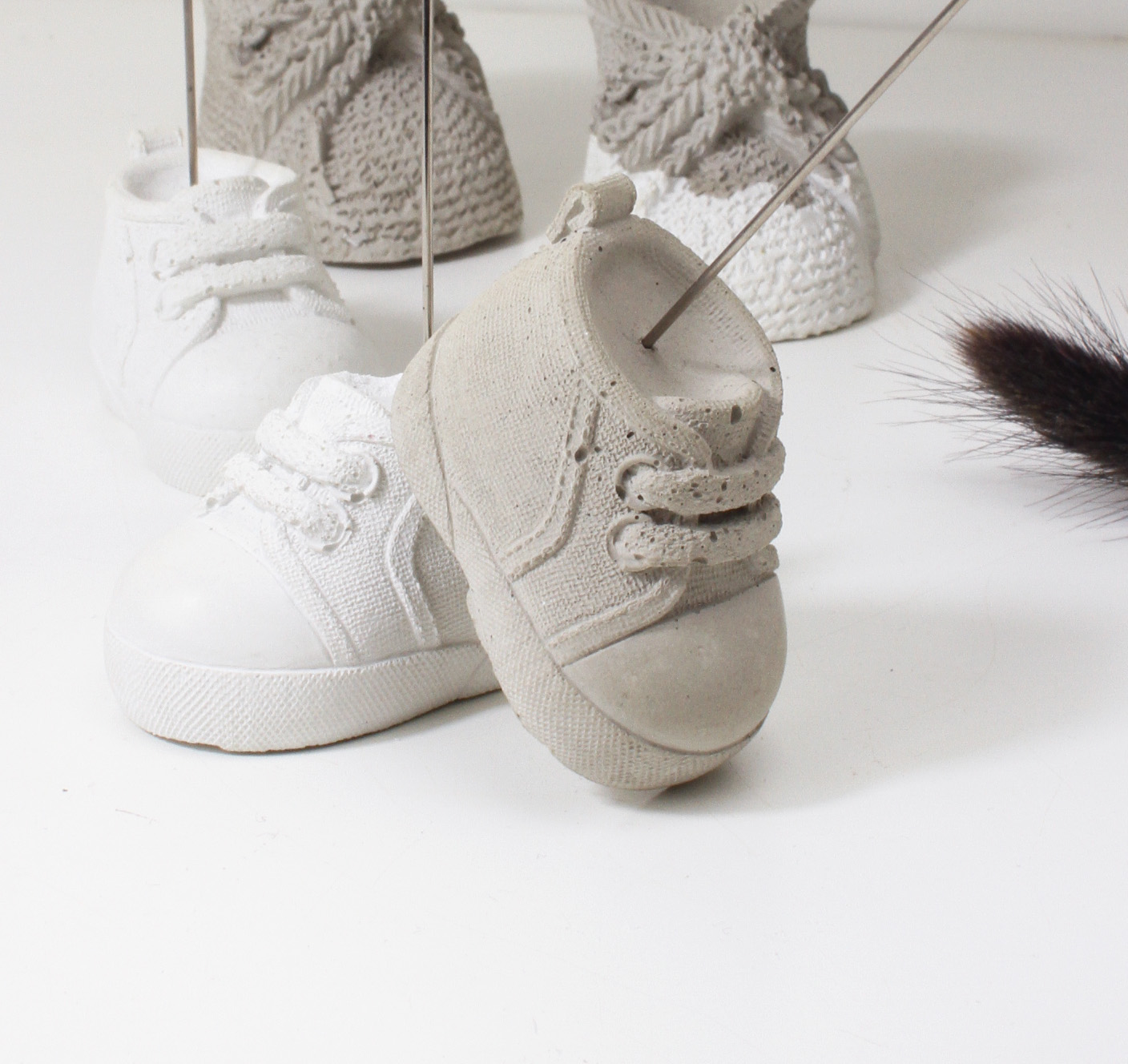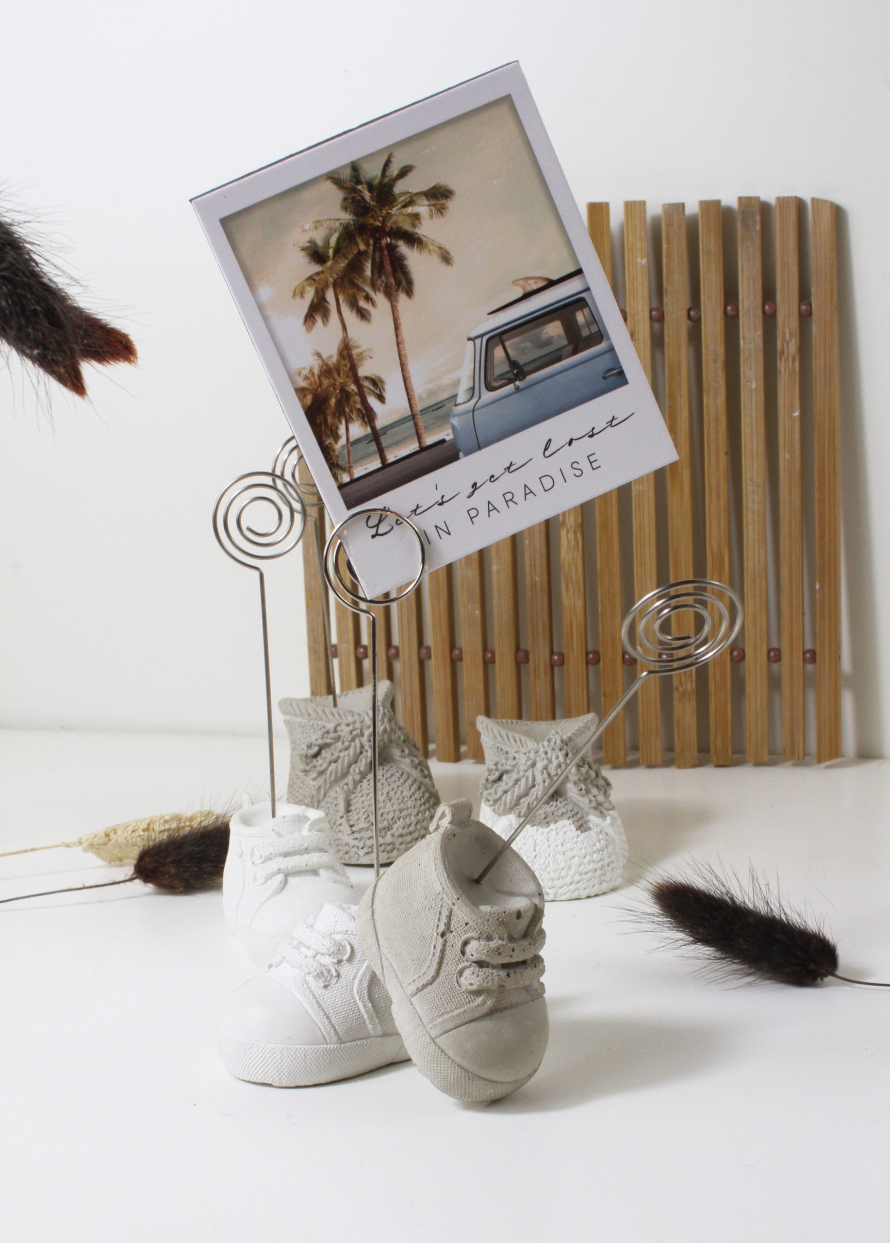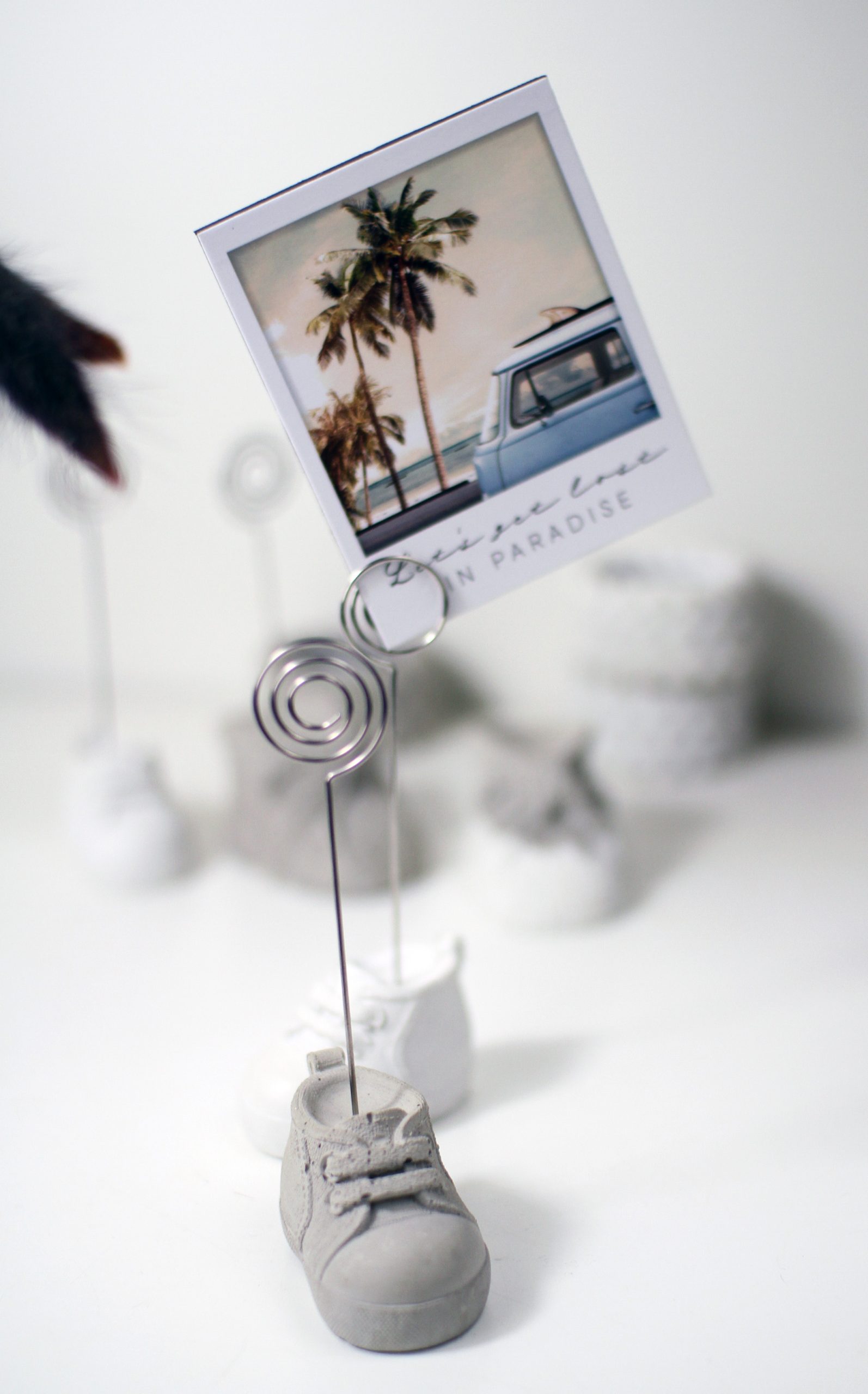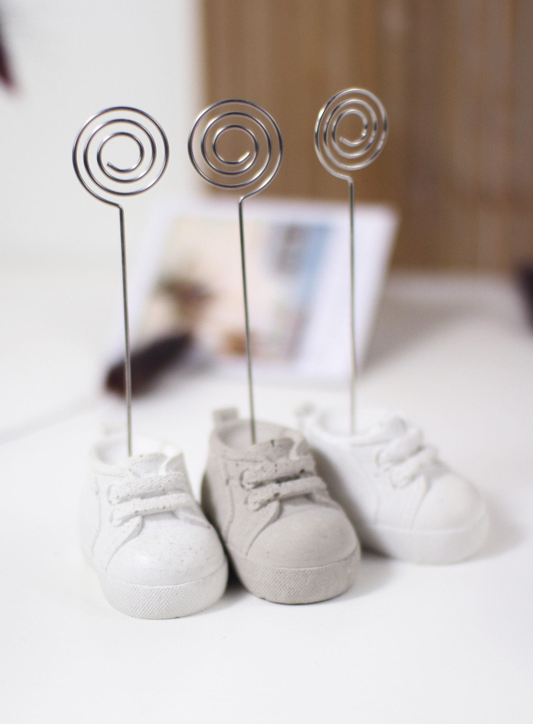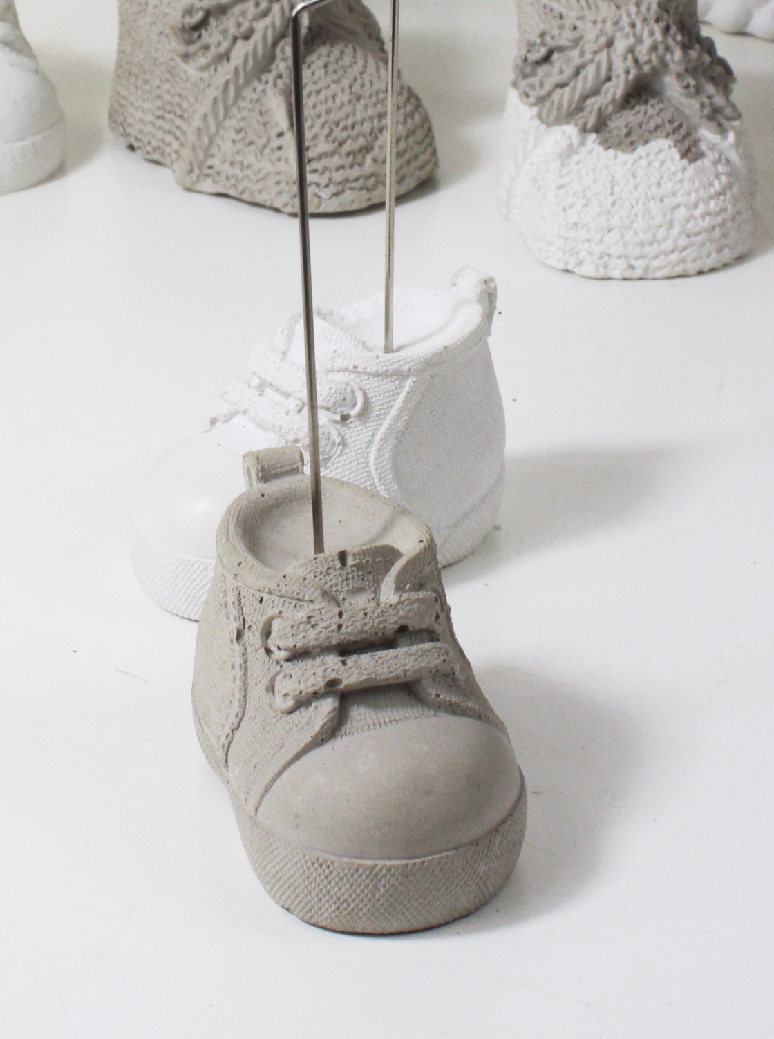 Dieser originelle Fotoclip eignet sich wunderbar als Geschenk zur Babyparty. Aber nicht nur für Kleinkinder sondrn auch für Turnschuhliebhaber geeignet. Hüsche Deko aus Beton, kein Raisin, Jesomite oder anderes Material.