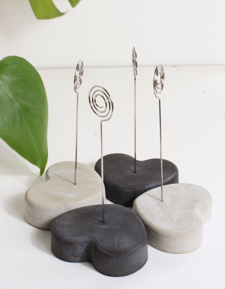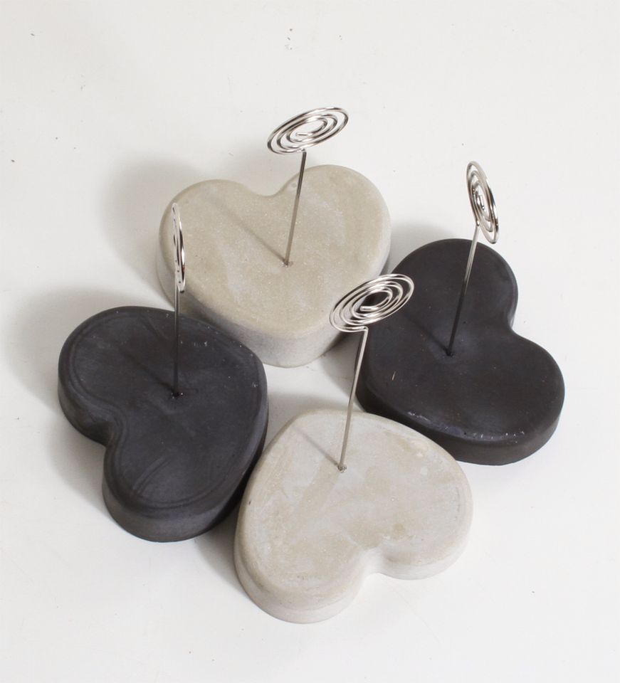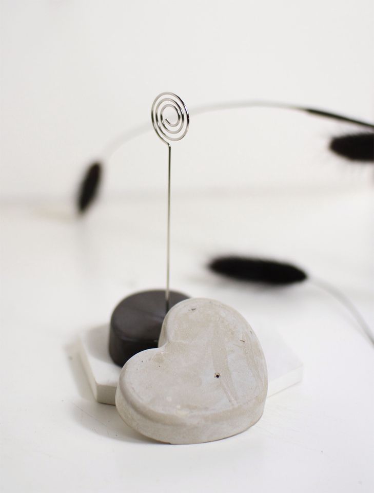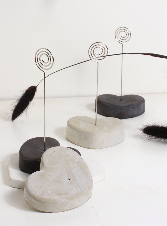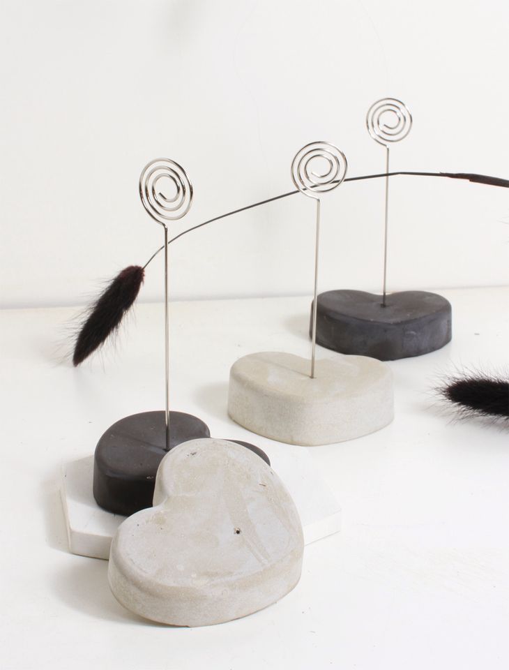 Die Herzen aus Beton sehen hübsch als Deko aus. Diese kleinen Hübschen wurden von uns einfach zu Karten bzw. Fotohaltern umfunktioniert.