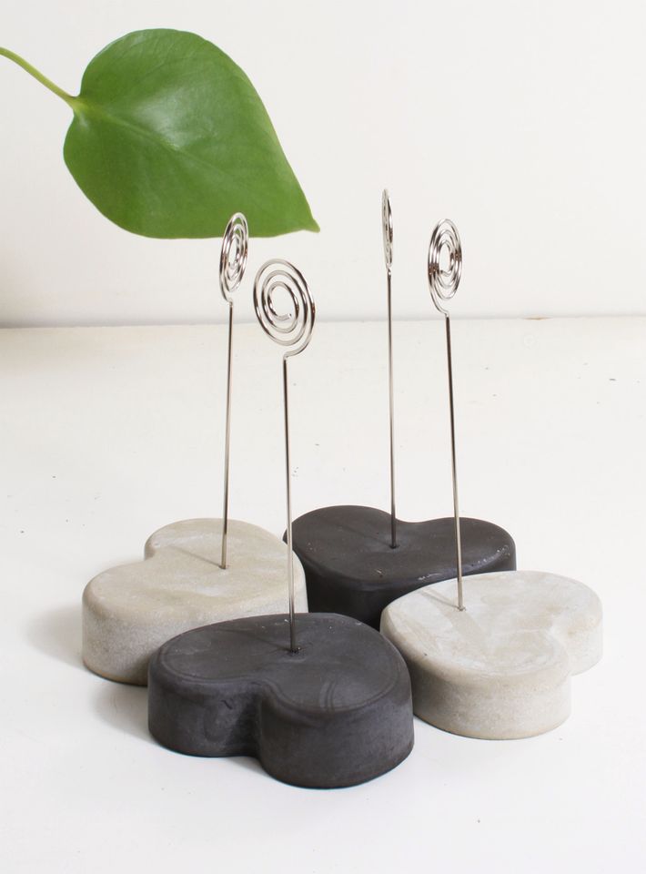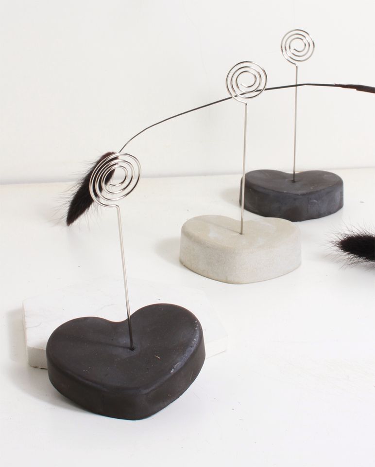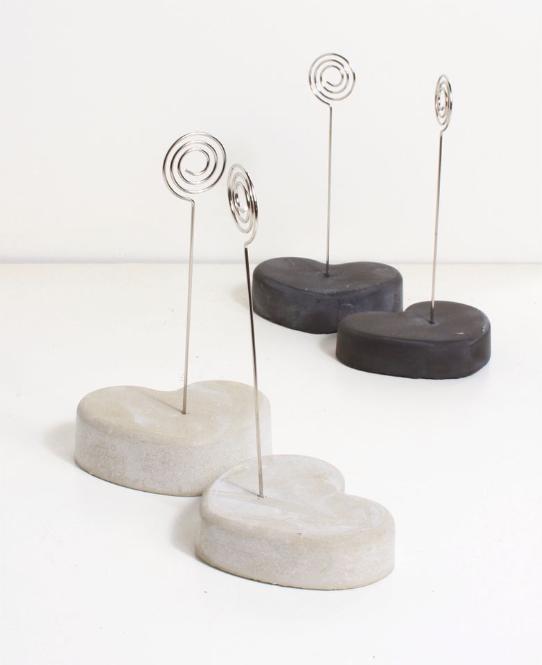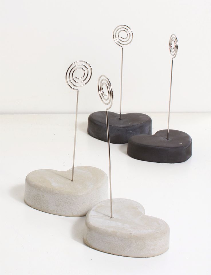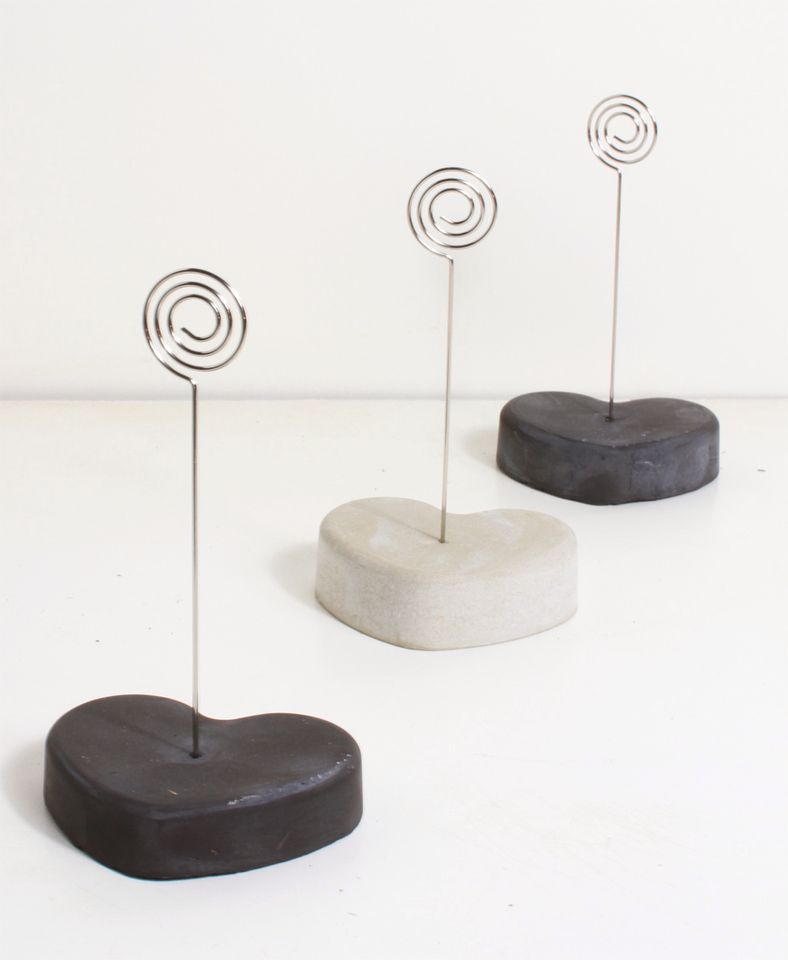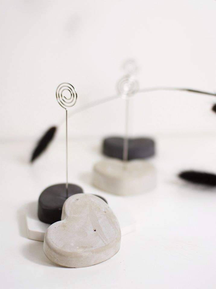 Die Herzen aus Beton sehen hübsch als Deko aus. Diese kleinen Hübschen wurden von uns einfach zu Karten bzw. Fotohaltern umfunktioniert.